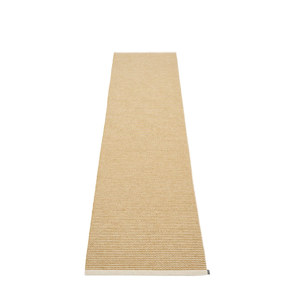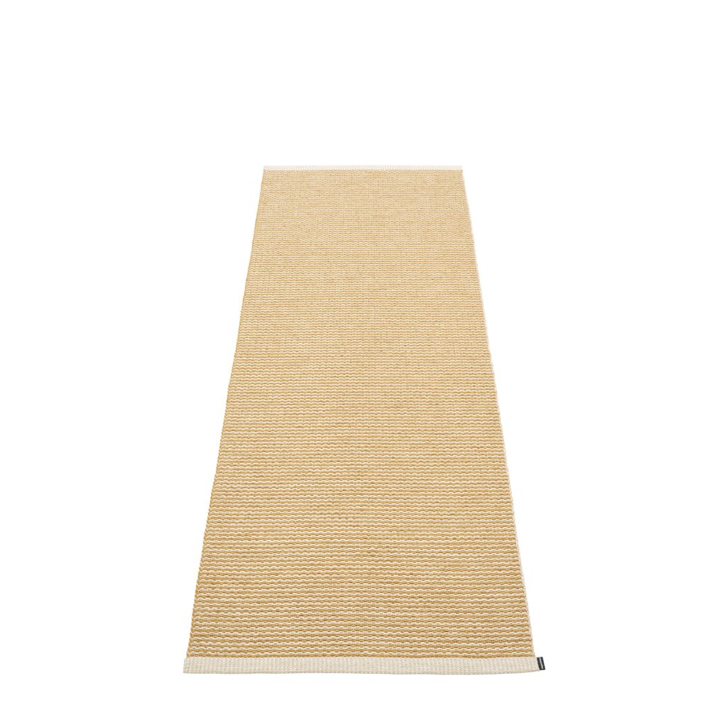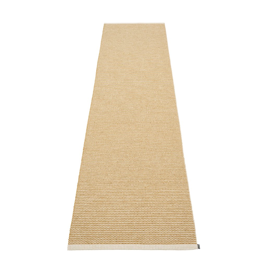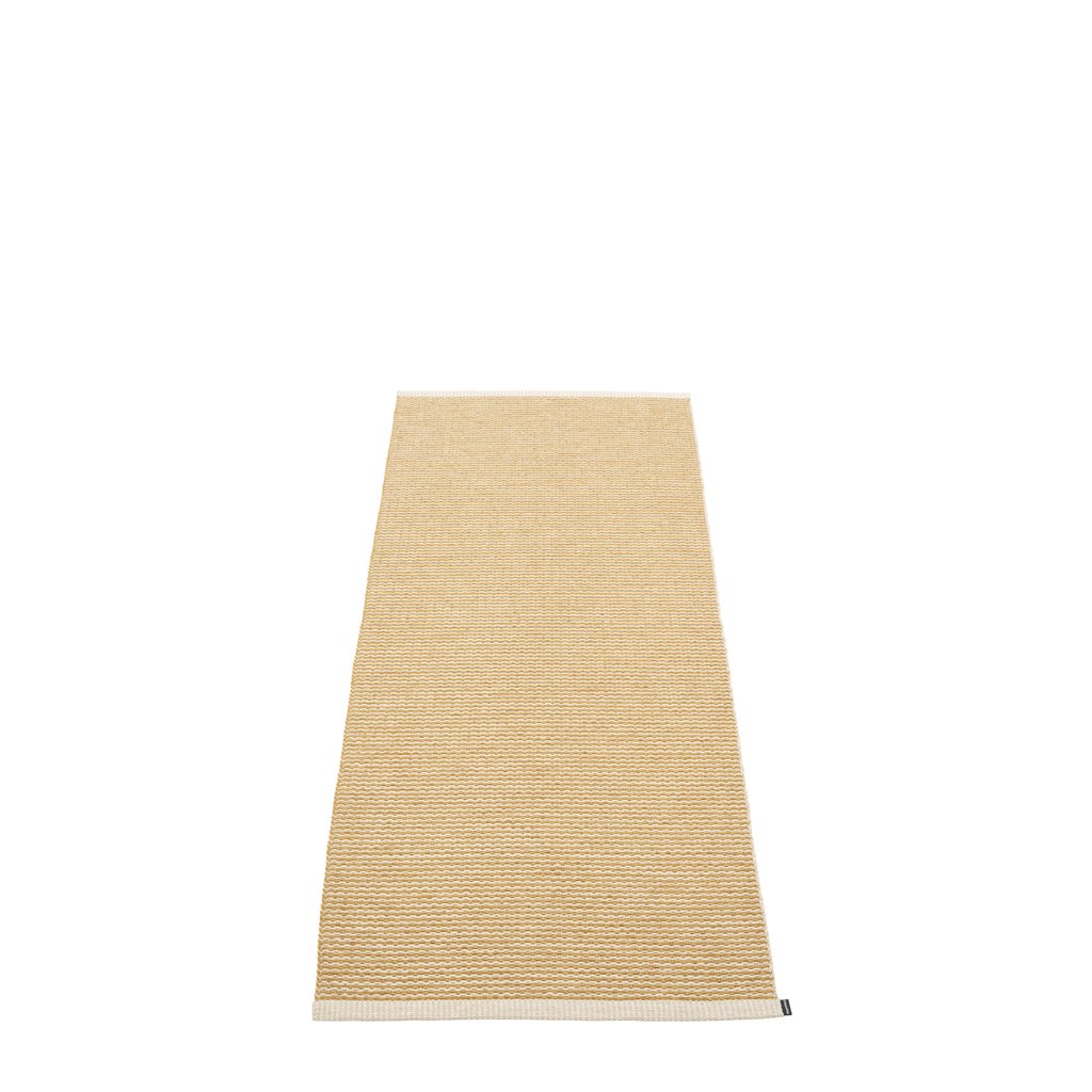 Plastový koberec pro vnitřní i venkovní použití. Vyrobeno ve Švédsku ze švédské certifikované PVC pásky bez obsahu ftalátů, tkané na tradičních stavech pomocí dřevěných člunků.