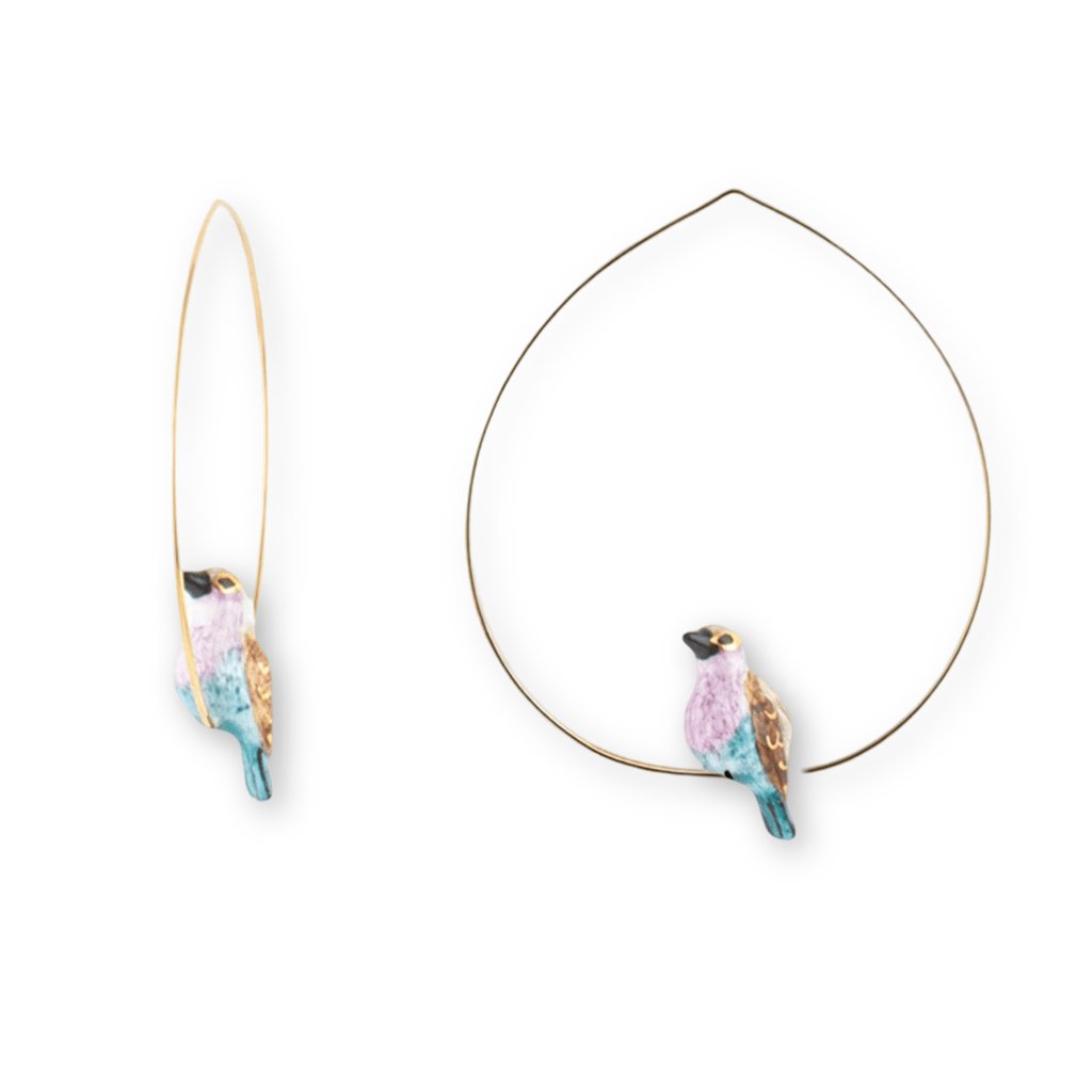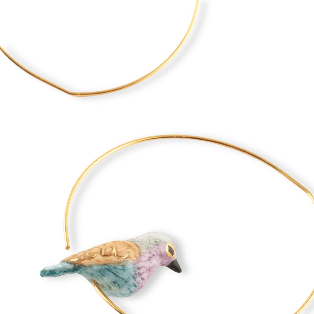 PINK & BLUE BIRD malé kruhové náušnice
